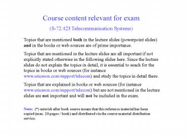 <Notice: Removed> Course content relevant for exam PowerPoint PPT Presentation