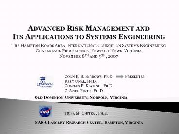 <Notice: Removed> Advanced Risk Management and Its Applications to Systems Engineering PowerPoint PPT Presentation