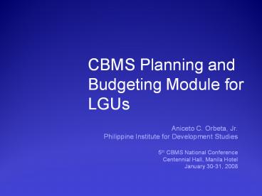 <Notice: Removed> CBMS Planning and Budgeting Module for LGUs PowerPoint PPT Presentation