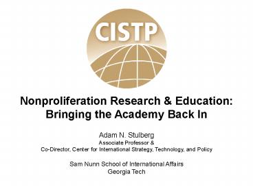 Nonproliferation and Disarmament - Thomas P. DAgostino, US Department of Energy