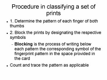 <Notice: Removed> Procedure in classifying a set of prints PowerPoint PPT Presentation