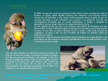 playa. Los macacos recogían los granos de trigo