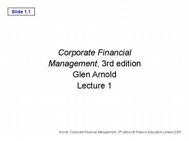 1Corporate Financial Management, 3rd edition Glen