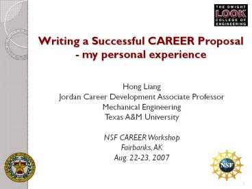 Writing a Successful CAREER Proposal - my personal experience PowerPoint PPT Presentation