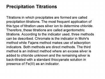 Precipitation Titrations PowerPoint PPT Presentation