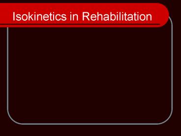 Isokinetics in Rehabilitation PowerPoint PPT Presentation