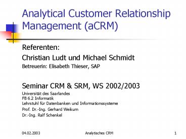Fachwissen erforderlich - aCRM liefert NUR Information keine