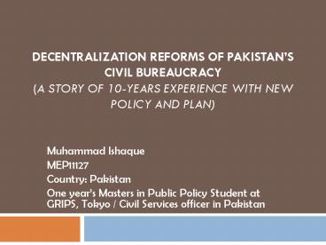 <Notice: Removed> DECENTRALIZATION REFORMS OF PAKISTAN PowerPoint PPT Presentation
