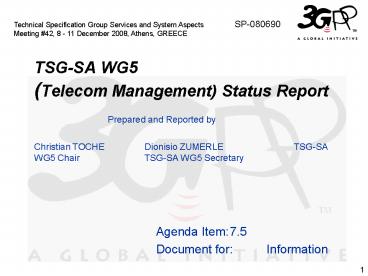 Title: TSG-SA WG5 (Telecom Management) Status Report