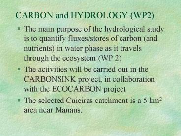 CARBON and HYDROLOGY (WP2) PowerPoint PPT Presentation