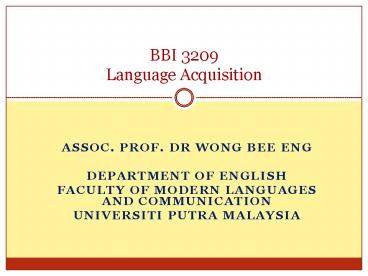 Title: ASSOC. PROF. DR WONG BEE ENG