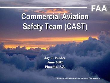 Title: Commercial Aviation Safety Team (CAST) Jay J. Pardee June 2002 Phoenix, AZ.