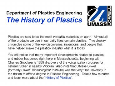 1Department of Plastics Engineering The History of