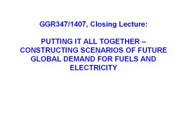 <Notice: Removed> Energy and the New Reality, Volume 1: Energy Efficiency and the Demand for Energy Services Chapter 10: Energy Demand Scenarios L. D. Danny Harvey harvey@geog.utoronto.ca PowerPoint PPT Presentation