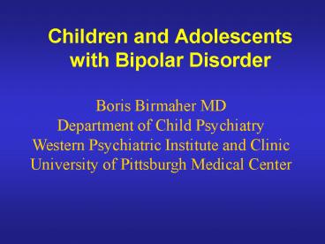Title: Children and Adolescents with Bipolar Disorder