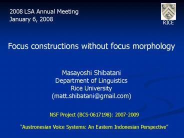 <Notice: Removed> Focus constructions without focus morphology PowerPoint PPT Presentation