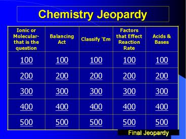 Ionic or Molecular- that is the question Balancing Act Classify Em Factors that Effect Reaction Rate Acids Bases