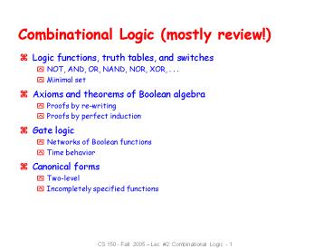 <Notice: Removed> Combinational Logic (mostly review!) PowerPoint PPT Presentation
