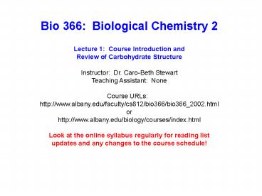 <Notice: Removed> Bio 366: Biological Chemistry 2 PowerPoint PPT Presentation
