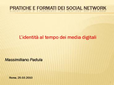 <Notice: Removed> PRATICHE E FORMATI DEI SOCIAL NETWORK PowerPoint PPT Presentation