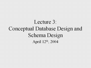 Title: Lecture 3: Conceptual Database Design and Schema Design