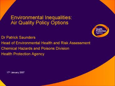 Environmental Inequalities: Air Quality Policy Options PowerPoint PPT Presentation
