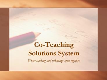 <Notice: Removed> Co-Teaching Solutions System PowerPoint PPT Presentation