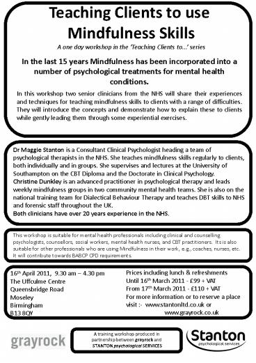 Teaching Clients to use Mindfulness Skills A one