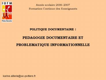 <Notice: Removed> POLITIQUE DOCUMENTAIRE : PEDAGOGIE DOCUMENTAIRE ET PROBLEMATIQUE INFORMATIONNELLE PowerPoint PPT Presentation