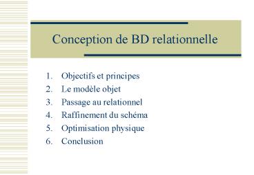 Title: Conception de BD relationnelle