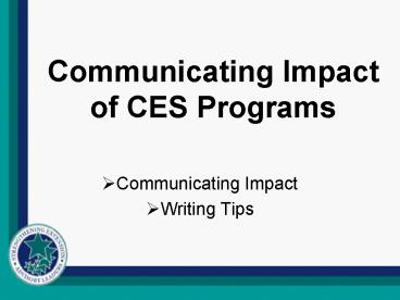 <Notice: Removed> Communicating Impact of CES Programs PowerPoint PPT Presentation