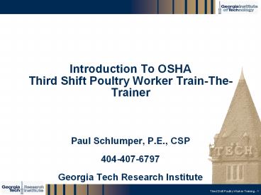 <Notice: Removed> Third Shift Poultry Worker Training - 1 PowerPoint PPT Presentation