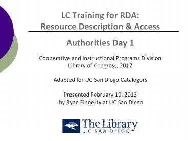 <Notice: Removed> LC Training for RDA: Resource Description PowerPoint PPT Presentation
