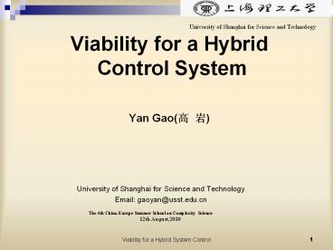 <Notice: Removed> Viability for a Hybrid Control System Yan Gao(? ?) PowerPoint PPT Presentation