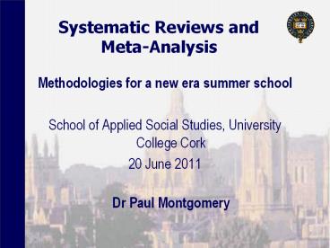 <Notice: Removed> Systematic Reviews and Meta-Analysis PowerPoint PPT Presentation