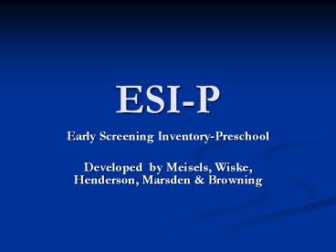 - Early Screening Inventory-Preschool