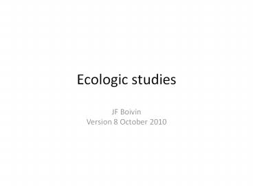<Notice: Removed> Ecologic studies PowerPoint PPT Presentation
