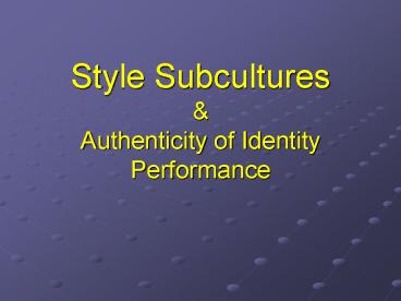 <Notice: Removed> Style Subcultures PowerPoint PPT Presentation
