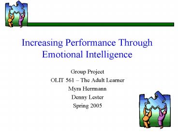 Increasing Performance Through Emotional Intelligence Group Project OLIT 561 The Adult Learner Myra Herrmann Denny Lester Spring 2005 Research Studies ... – PowerPoint PPT presentation