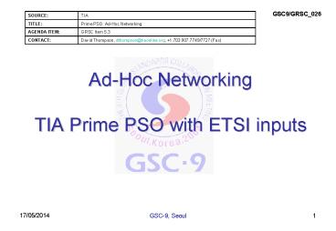 <Notice: Removed> Ad-Hoc Networking TIA Prime PSO with ETSI inputs PowerPoint PPT Presentation