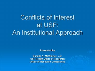 <Notice: Removed> Conflicts of Interest at USF: An Institutional Approach PowerPoint PPT Presentation
