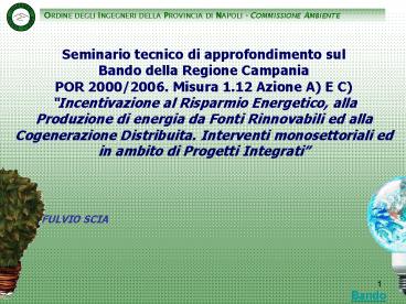 1Seminario tecnico di approfondimento sul Bando della Regione Campania POR 2000/2006. Misura 1.12 Azione A) E C) Incentivazione al Risparmio Energetico, alla Produzione di energia da Fonti Rinnovabili ed alla Cogenerazione Distribuita. Interventi monosettoriali ed in ambito di Progetti Integrati