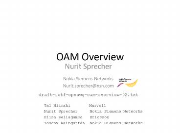 <Notice: Removed> OAM Overview PowerPoint PPT Presentation