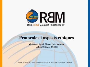 1 Protocole et aspects éthiques Mohamed Ayad,