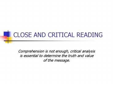 <Notice: Removed> CLOSE AND CRITICAL READING PowerPoint PPT Presentation