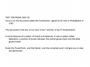 <Notice: Removed> TEST FOR FRIDAY, NOV. 30 PowerPoint PPT Presentation
