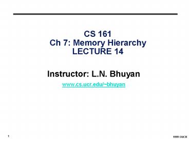 Title: CS 161 Ch 7: Memory Hierarchy LECTURE 14