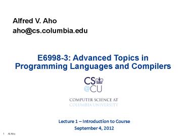 <Notice: Removed> E6998-3: Advanced Topics in Programming Languages and Compilers PowerPoint PPT Presentation