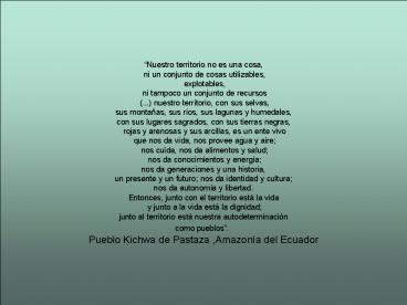 Pueblo Kichwa de Pastaza ,Amazonía del Ecuador