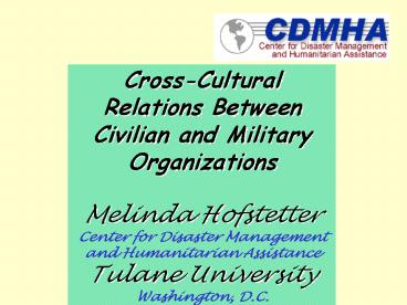Title: Cross-Cultural Relations Between Civilian and Military Organizations Melinda Hofstetter